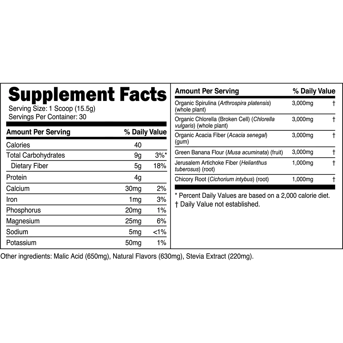Transparent Labs Prebiotic Greens provides a meaningful dose of dietary fiber—approximately 20% of the Recommended Daily Value (DV).